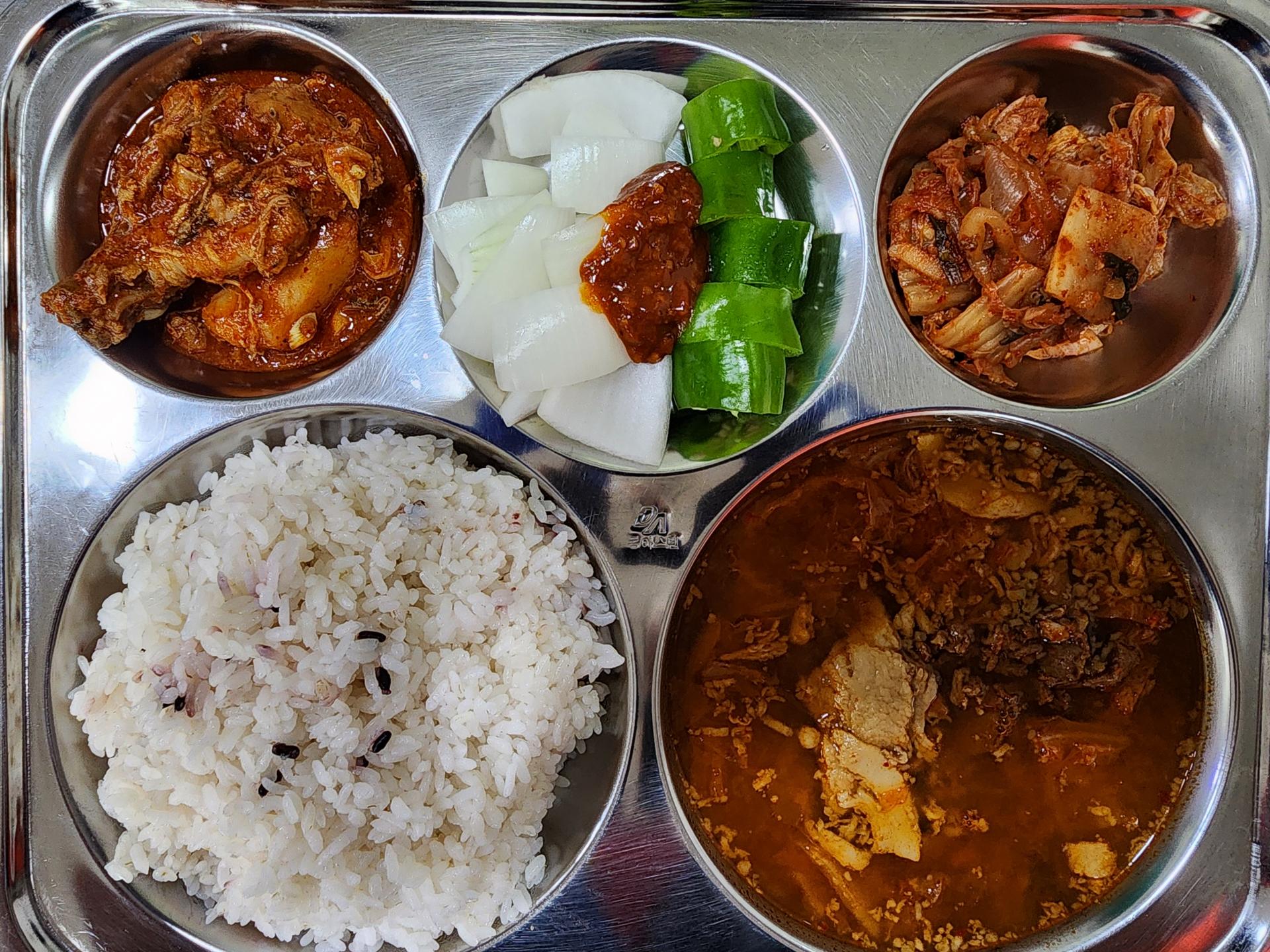 2025년09월06일(중식) : 흑미밥,돈육김치찌개,닭볶음탕,양파,풋고추&쌈장,김치