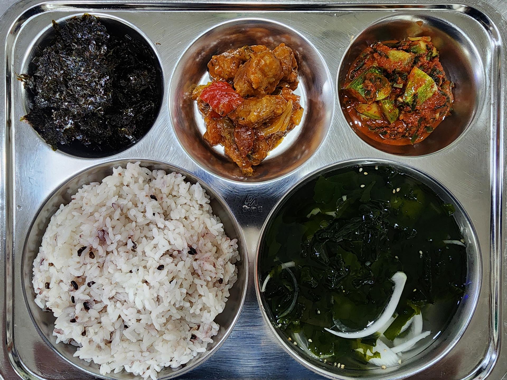 2025년07월12일(중식) : 흑미밥,미역냉국,미트볼브로콜리케첩조림,조미김가루,오이소박이