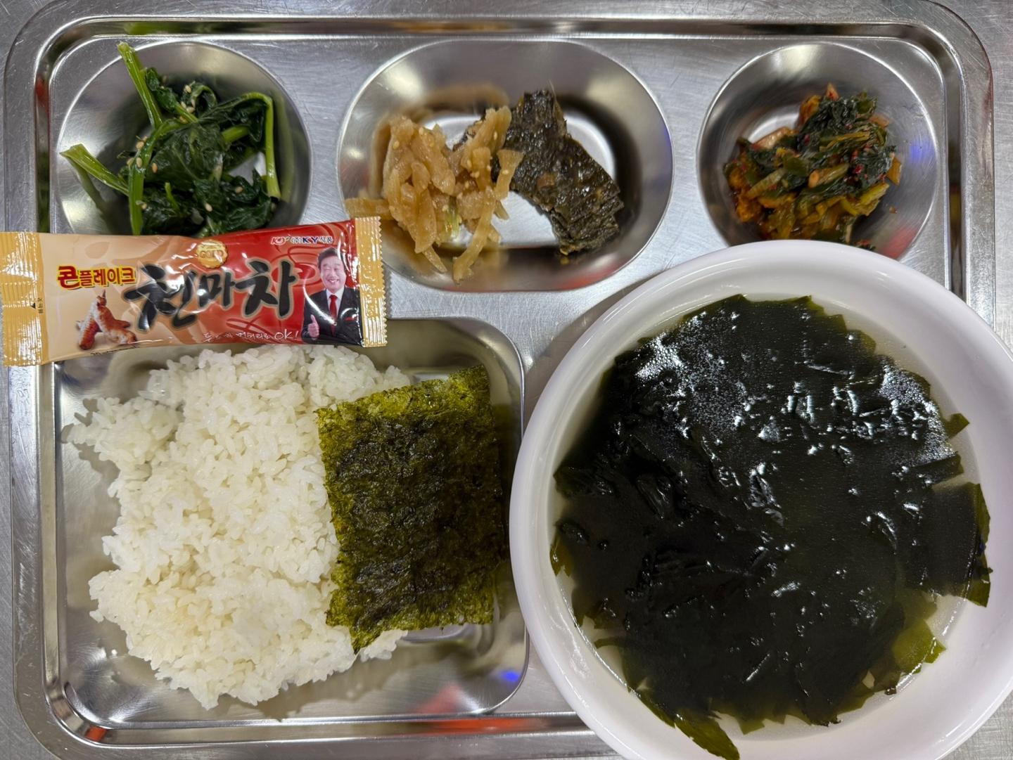 2025년06월16일(중식) : 쌀밥,미역국,시금치나물,무장아찌,깻잎지무침,열무김치,조미김,천마차